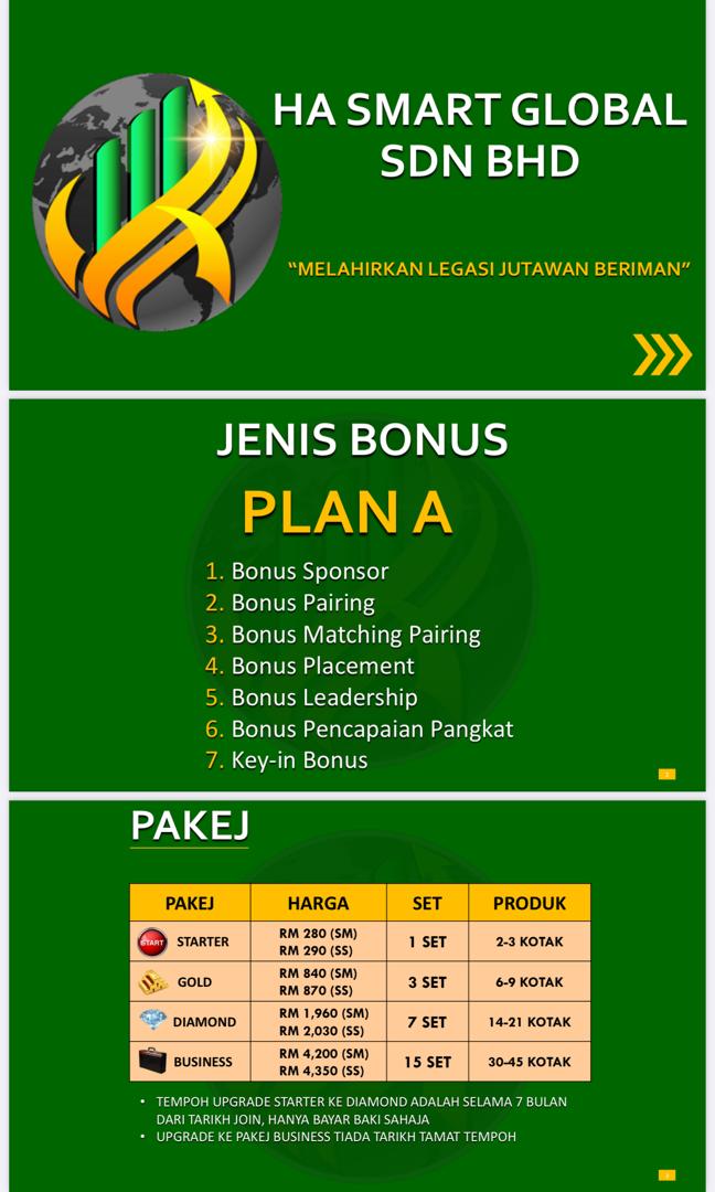 Pakej yang ditawarkan untuk START BERNIAGA Di HA SMART..